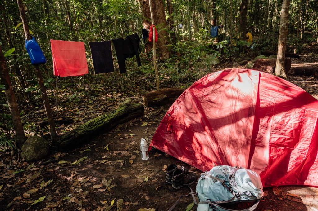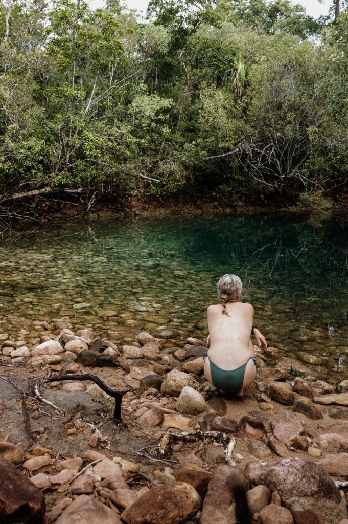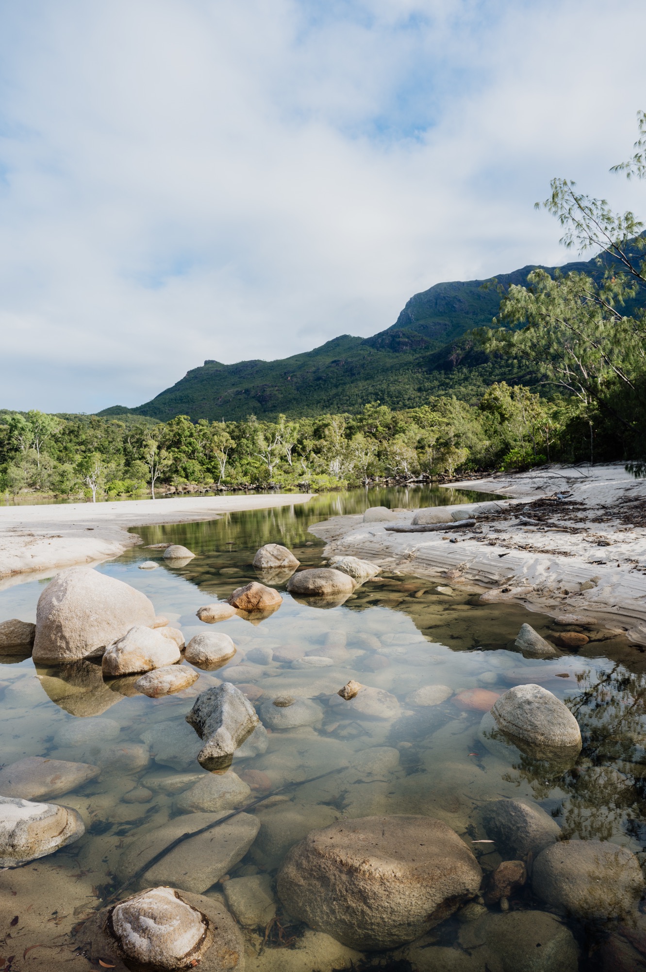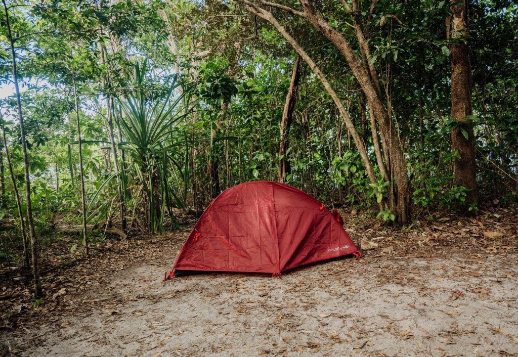 After returning to the trailhead, it’s only a short walk to your first overnight stop at Little Ramsay Bay. The designated camping area sits just off the beach, tucked behind coastal vegetation for shelter from the elements. Something to note about Little Ramsey Bay, when you first arrive you will be be greeted by a crystal clear pool with Mt Bowen as a remarkable back drop it looks so enticing for a swim after your humid climb up Nina Peak, but don’t forget this is crocodile country, and being so close to the ocean its strongly advised not to swim, there is a fresh water creek further inland from the main camping area for a freshen up.
